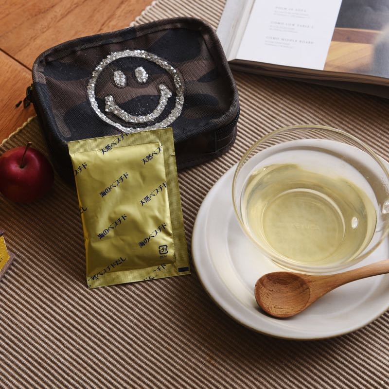 お湯にサッととける無添加のお出汁。もちろんそのまま召し上がってもよし、お料理にお使いいただき、味を格上げしてもよし。10gずつの個包装が10パック入ってます。
